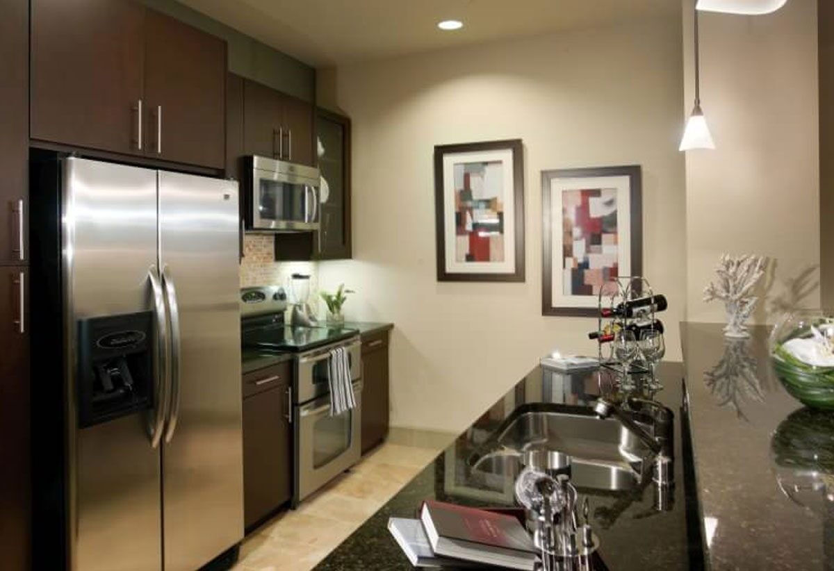 Modern eight story structure offers a contemporary mixed-use building with 207 one, two and three bedroom apartments. With 9,000 square feet of street level retail. Hip urban retreats that function for downtown lifestyles are greeted by a secluded interior courtyard, perfectly landscaped with bamboo, palm trees and a warming fire pit surrounded by seating, which presents the perfect urban oasis. From the gated parking, to the lobby, to your front door, a unique sense of location and style brings you home.
